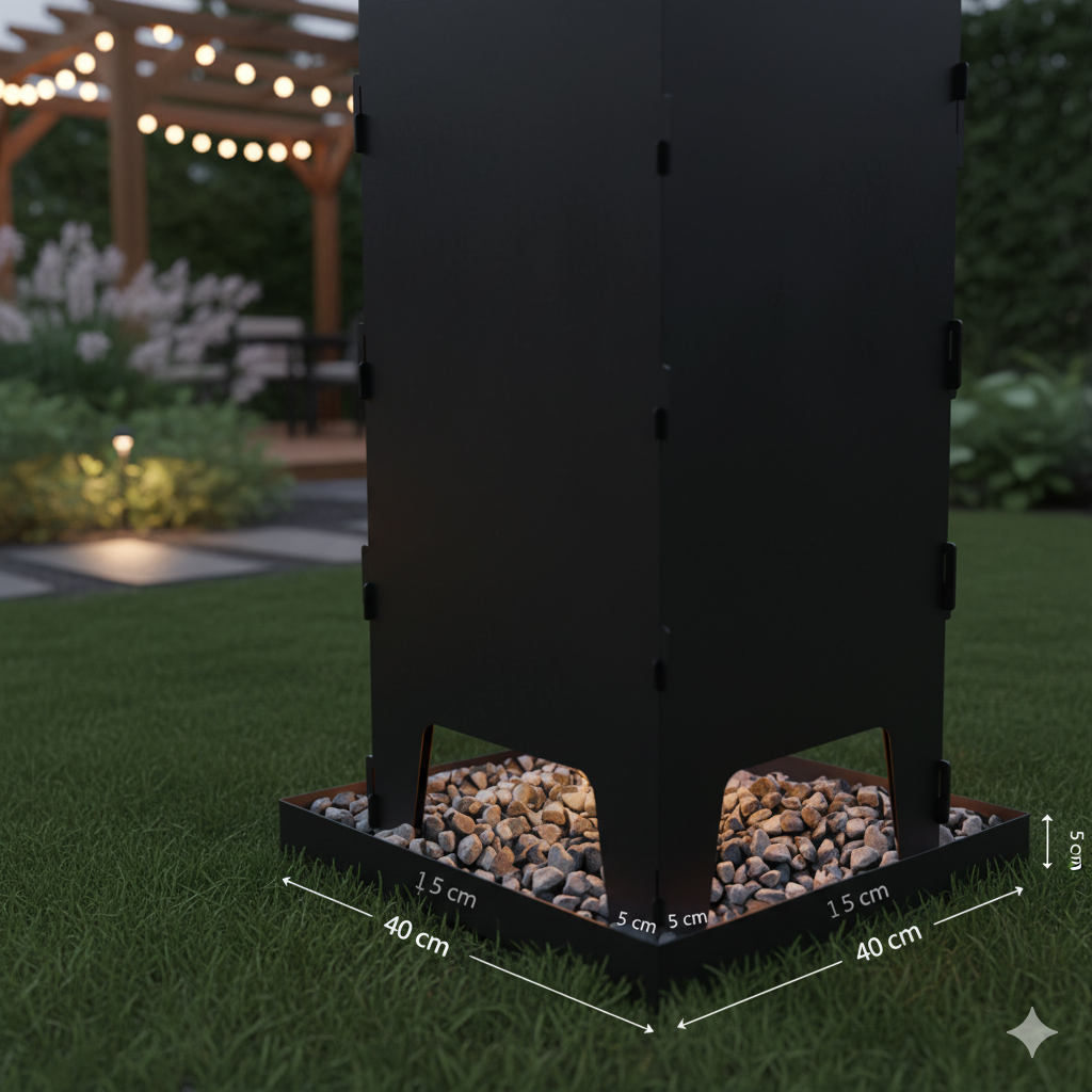 Unsere Aschewanne aus hochwertigem Stahl ist eine Ergänzung zu unseren Feuertonnen. Die Aschewanne dient dazu, dass dein Platz vor Verschmutzungen geschützt ist. Um diese Optisch ein bisschen aufzuwerten, kannst du sie mit Sand oder Steinen befüllen.