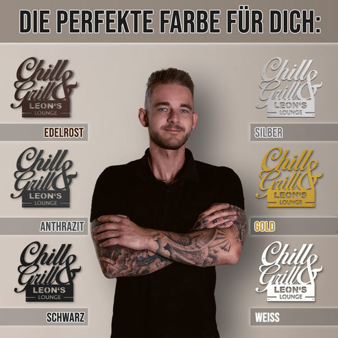 Unser "BBQ Chill & Grill" mit Wunschtext aus hochwertigem Stahl ist der perfekte Dekoartikel für jedes Zuhause. Langlebig und beständig eignet es sich sowohl für den Innen- als auch den Außenbereich. Unser BBQ Chill & Grill ist in verschiedenen Farben und Größen erhältlich.
