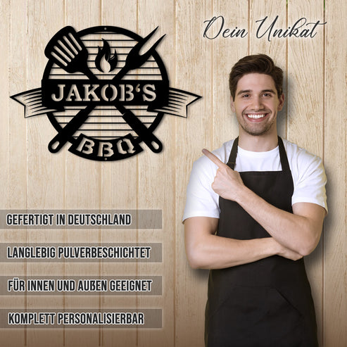 BBQ Schild aus edlem Stahl (personalisierbar)