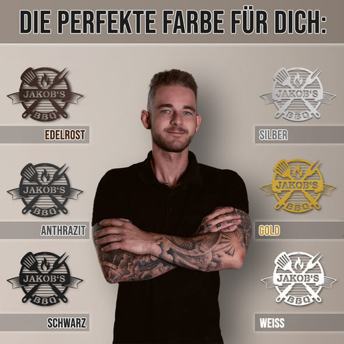 Unser "BBQ Schild" mit Wunschtext aus hochwertigem Stahl ist der perfekte Dekoartikel für jedes Zuhause. Langlebig und beständig eignet es sich sowohl für den Innen- als auch den Außenbereich. Unser BBQ Schild ist in verschiedenen Farben und Größen erhältlich.