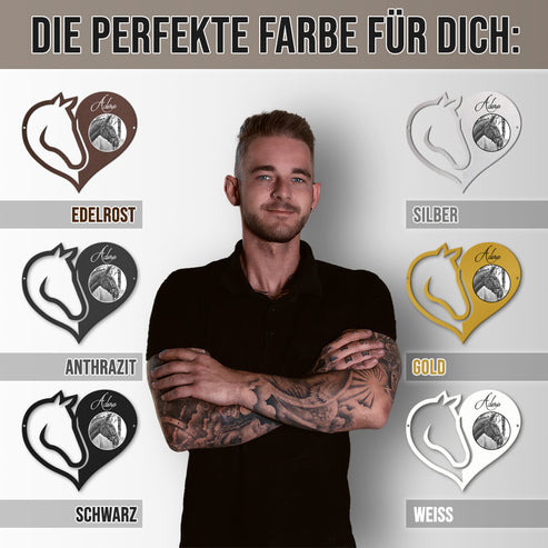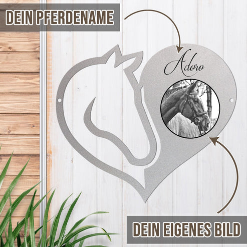 Ob für Dein Pferd oder als Geschenk für Pferdeliebhaber, Beloved Horse begeistert alle. Ein außergewöhnlicher Artikel, der für die Ewigkeit hergestellt wird. Der Artikel ist sowohl für den Innen- als auch für den Außenbereich aus hochwertigem Stahl hergestellt. Du hast die Möglichkeit, ein Bild Deines Pferdes hochzuladen, und wir versehen Dein Produkt mit Fotopersonalisierung und den Namen des Pferdes.