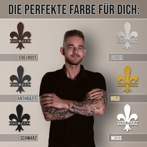 Lasst Euren Namen oder Eure Hausnummer auf dem wunderschönen Lilienemblem personalisieren und macht Euren Eingangsbereich zum Eyecatcher. Unser Emblem "Lilie" aus hochwertigem Stahl ist der ideale Geschenkartikel zum Einzug, Umzug oder jedem anderen Anlass. Aufgrund der hochwertigen Pulverbeschichtung ist es bestens für den Außenbereich geeignet. Unser Emblem "Lilie" ist in verschiedenen Größen und Farben erhältlich.