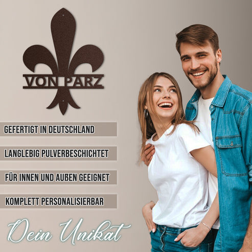 Emblem Lilie - dekoratives Wandschild für den Außenbereich (personalisierbar)
