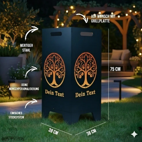 Feuertonne Lebensbaum aus edlem Stahl