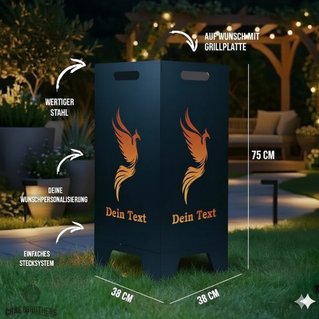 Ganz einfach! Sobald du deine Feuertonne ausgewählt hast, gibt es ein Personalisierungstool auf unserer Website. Hier kannst du deinen Namen, Lieblingsspruch oder ein individuelles Motiv eingeben. Unser Team macht deine Ideen Realität!