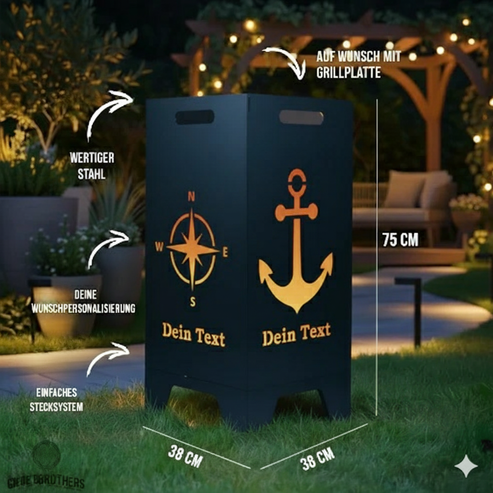 Ganz einfach! Sobald du deine Feuertonne ausgewählt hast, gibt es ein Personalisierungstool auf unserer Website. Hier kannst du deinen Namen, Lieblingsspruch oder ein individuelles Motiv eingeben. Unser Team macht deine Ideen Realität!