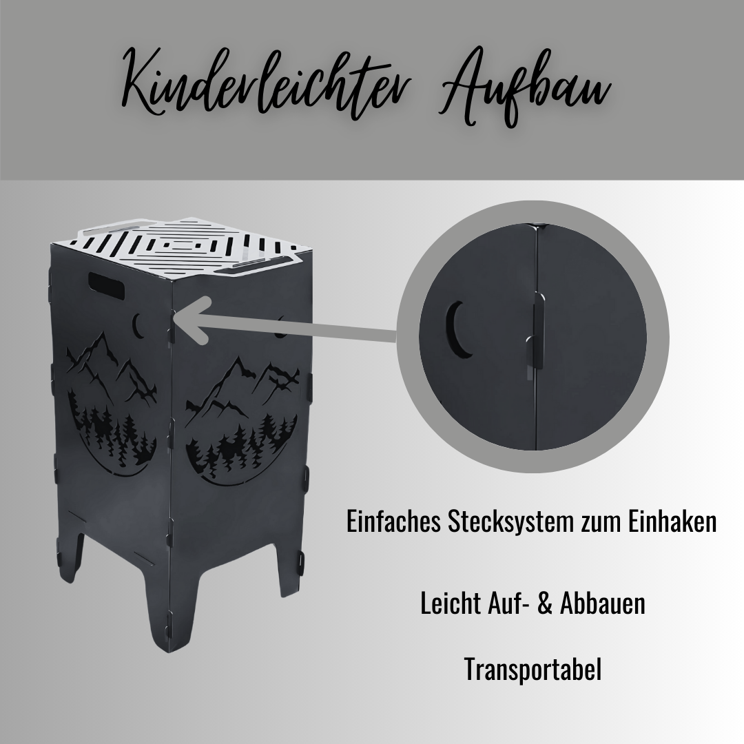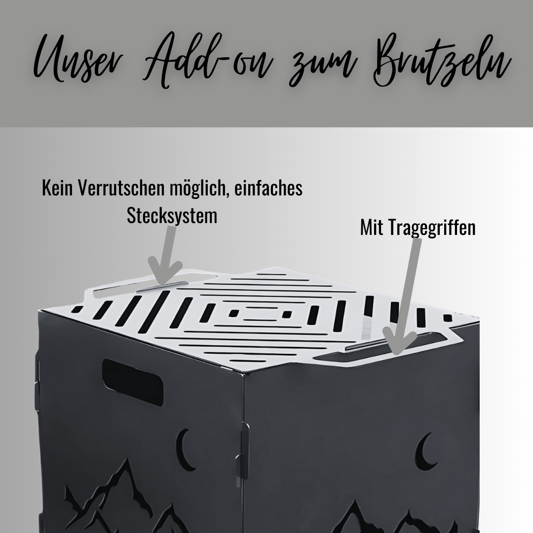 Einfach aufstecken, sicher einrasten – fertig ist deine Feuerstelle mit Grillfunktion.