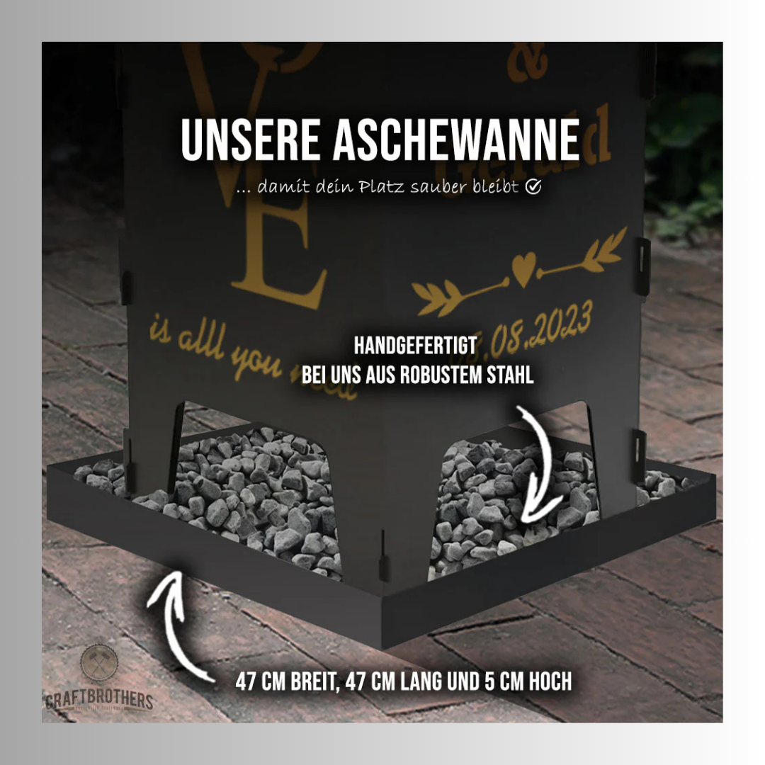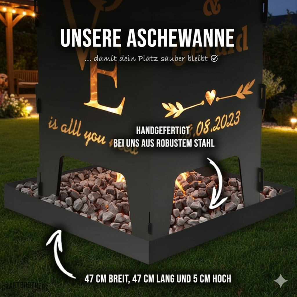 Unsere handgefertigte Aschewanne – für einen sauberen Platz rund ums Feuer.
