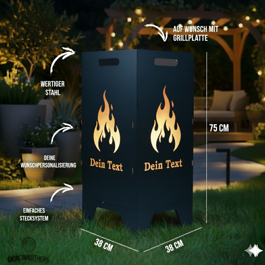 Ganz einfach! Sobald du deine Feuertonne ausgewählt hast, gibt es ein Personalisierungstool auf unserer Website. Hier kannst du deinen Namen, Lieblingsspruch oder ein individuelles Motiv eingeben. Unser Team macht deine Ideen Realität!
