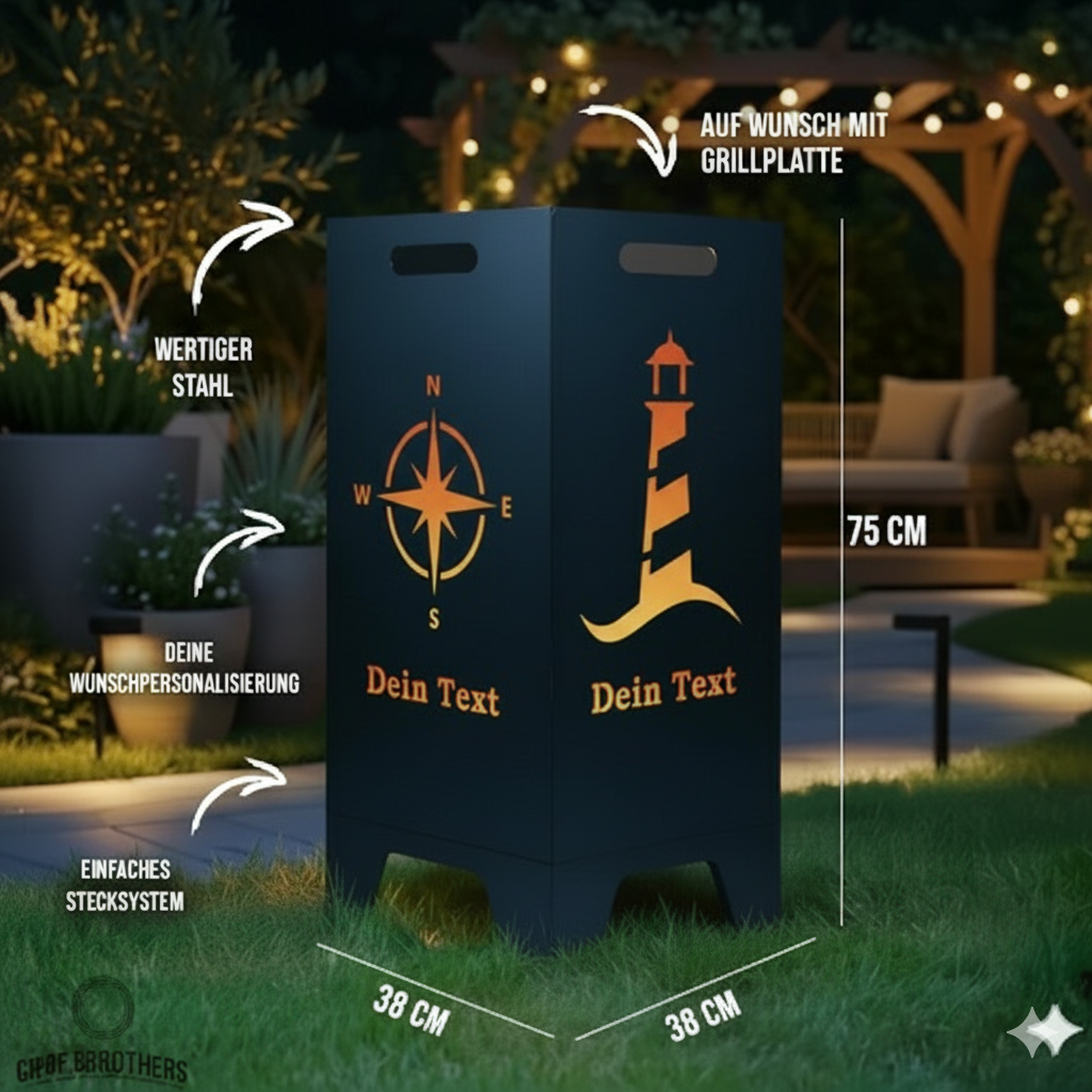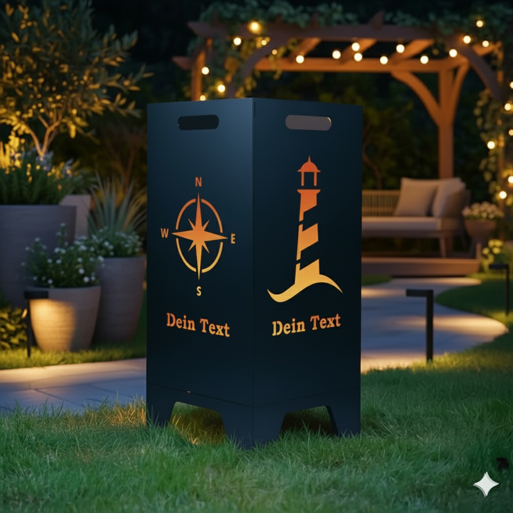 Feuertonne Leuchtturm & Kompass aus edlem Stahl