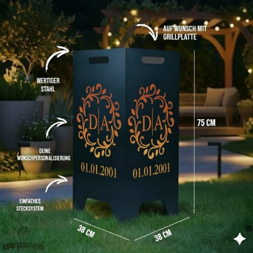 Ganz einfach! Sobald du deine Feuertonne ausgewählt hast, gibt es ein Personalisierungstool auf unserer Website. Hier kannst du deinen Namen, Lieblingsspruch oder ein individuelles Motiv eingeben. Unser Team macht deine Ideen Realität!
