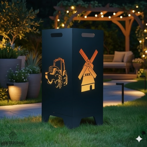 Feuertonne Traktor & Mühle aus edlem Stahl