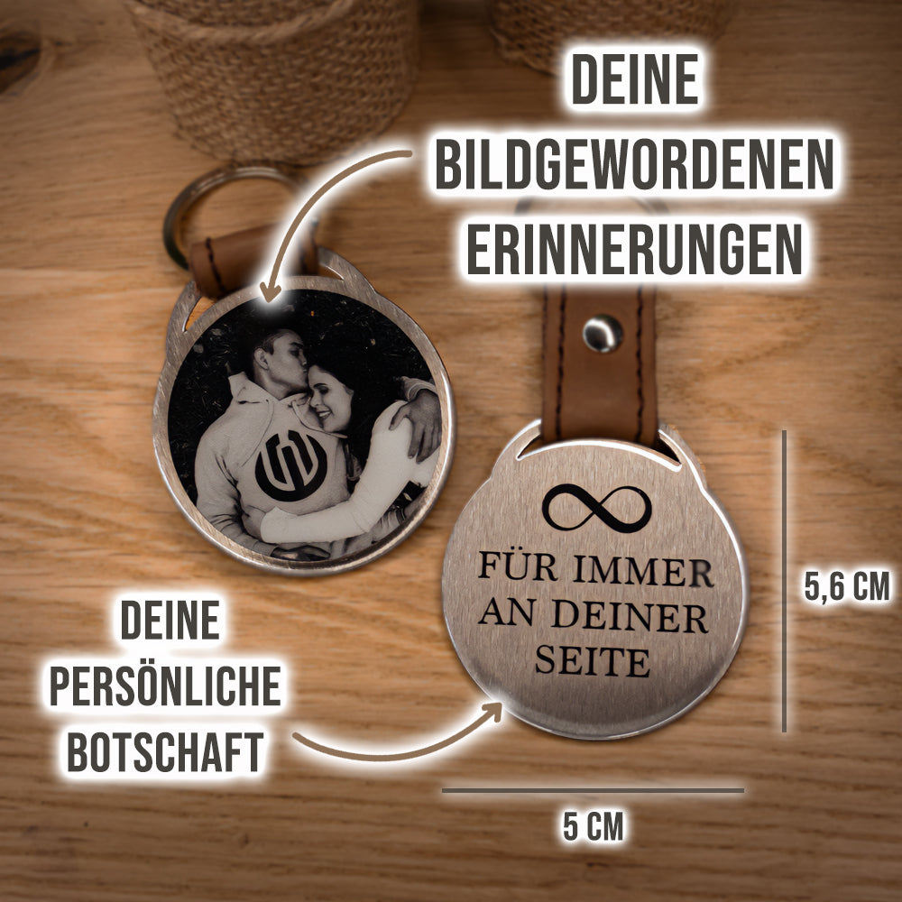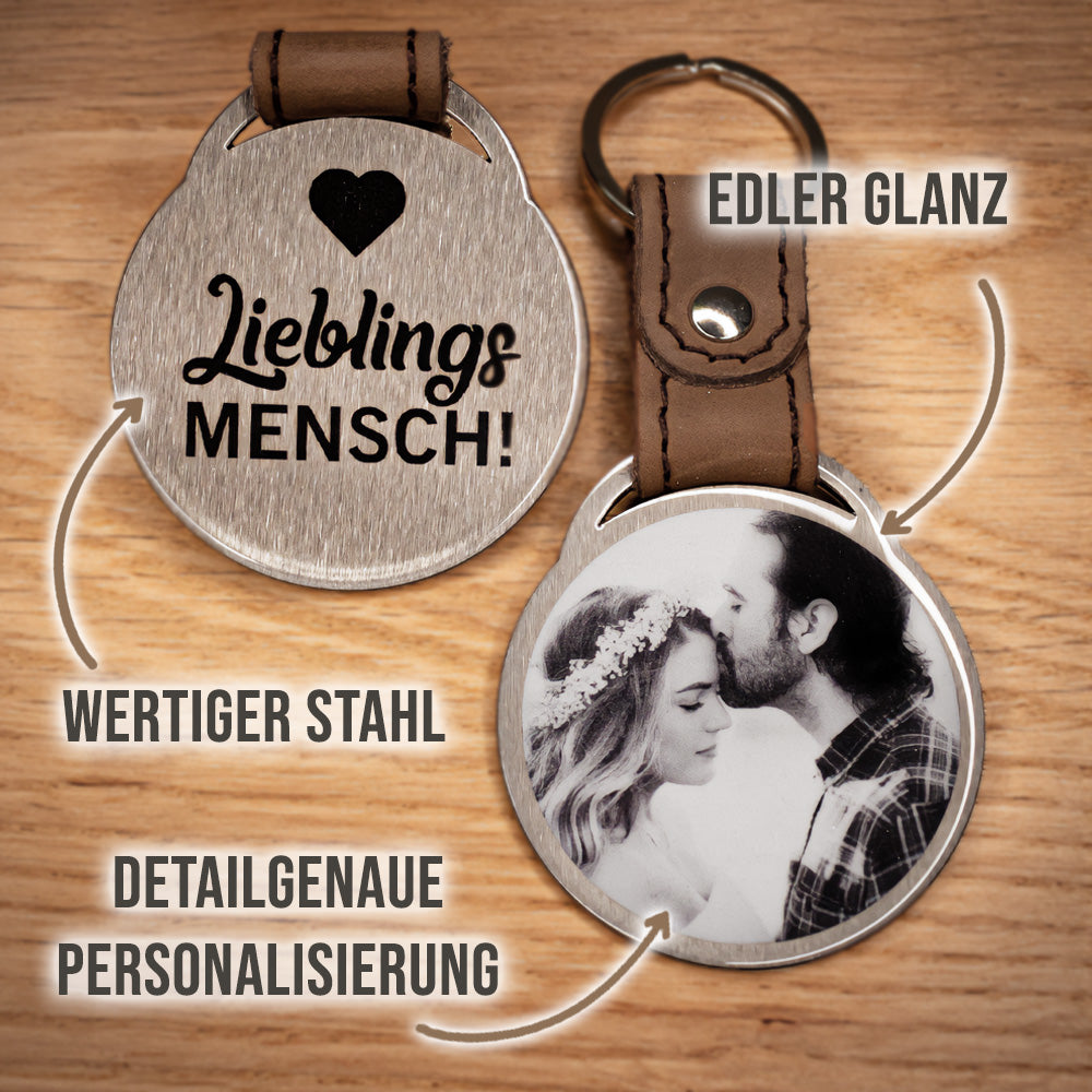 Mit einem individuellen Foto und Spruch wird der Schlüsselanhänger zu einem einzigartigen Geschenk, das garantiert in Erinnerung bleibt.