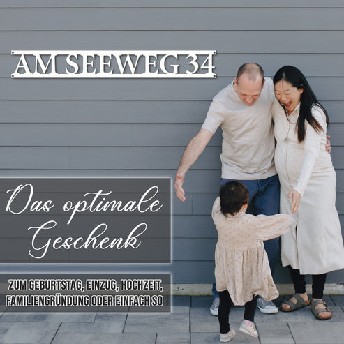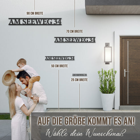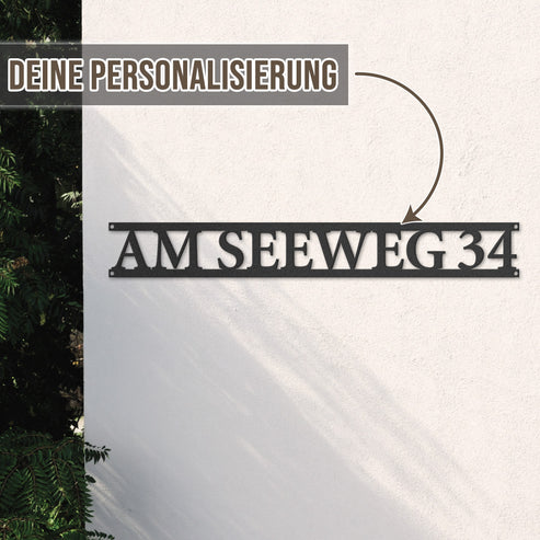 Unsere Straßenname und Hausnummer im modernen Design kann mit Eurem Straßennamen personalisiert werden (keine Emojis möglich). Sie wird aus hochwertigen Stahl hergestellt, der zusätzlich beschichtet wird. Somit ist deine Hausnummer perfekt für den Außenbereich geeignet und hält jedem Wetter stand. Die Hausnummer aus edlem Stahl von Craftbrothers wird auch gerne als Geschenkidee zum Einzug ins neue Heim angefertigt. Die Höhe des Schildes wird individuell angepasst.