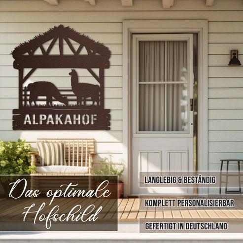Hofschild - Alpaka aus edlem Stahl (personalisierbar)