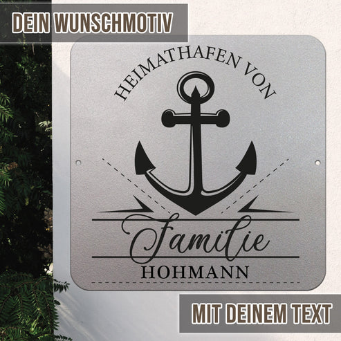 personalisierbares Türschild - Heimathafen - Großer Anker im edlen Klassiklook