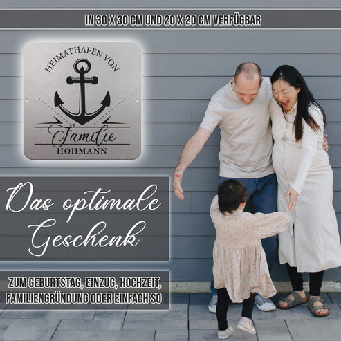Unsere personalisierbares Türschild  aus hochwertigem Stahl macht dein Zuhause zum perfekten Eyecatcher- eine tolle Geschenkidee beispielsweise zum Einzug ins Eigenheim.