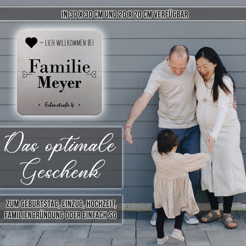 Unsere personalisierbares Türschild aus hochwertigem Stahl macht dein Zuhause zum  perfekten Eyecatcher - eine tolle Geschenkidee beispielsweise zum Einzug ins Eigenheim.