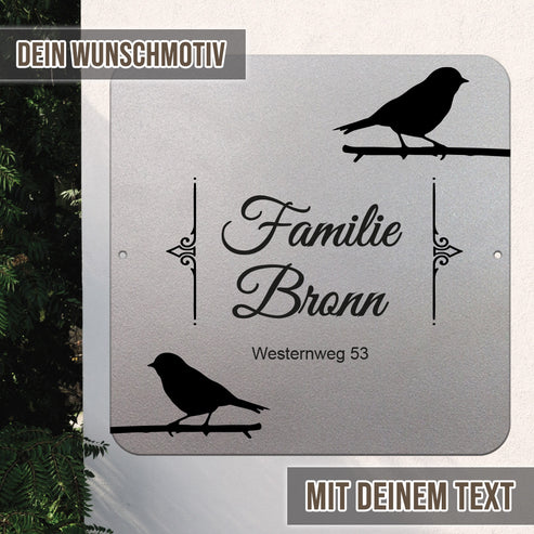 personalisierbares Türschild - Vogel im edlen Klassiklook